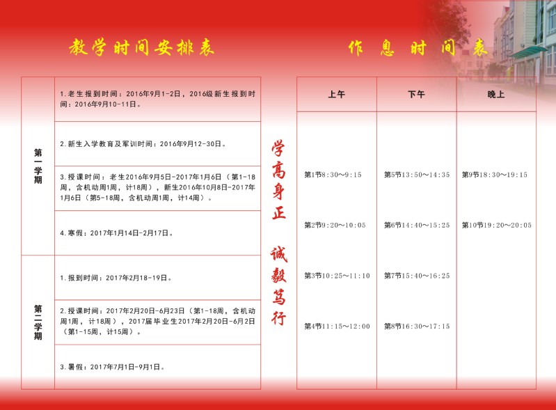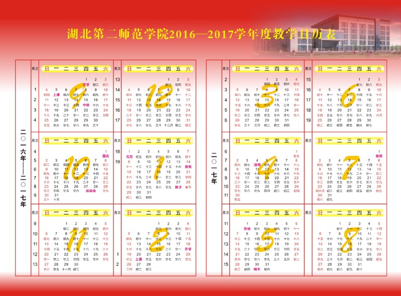 教学日历表(2016-2017学年)